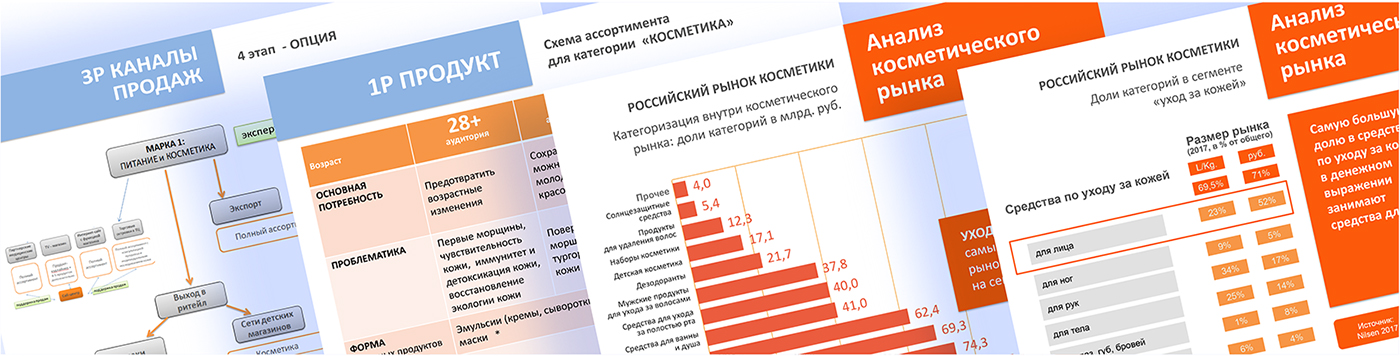 Мы определили с клиентом два направления, в которых клиент хотел бы развивать свое производство: функциональное питание и уходовая косметика. Мы провели подробный дискриптив рыночной ситуации по данным рынкам. На основании данных анализа были выявлены основные движущие силы, определены долгосрочные тренды развития и уходящие тенденции, проанализирован опыт российских и иностранных игроков.